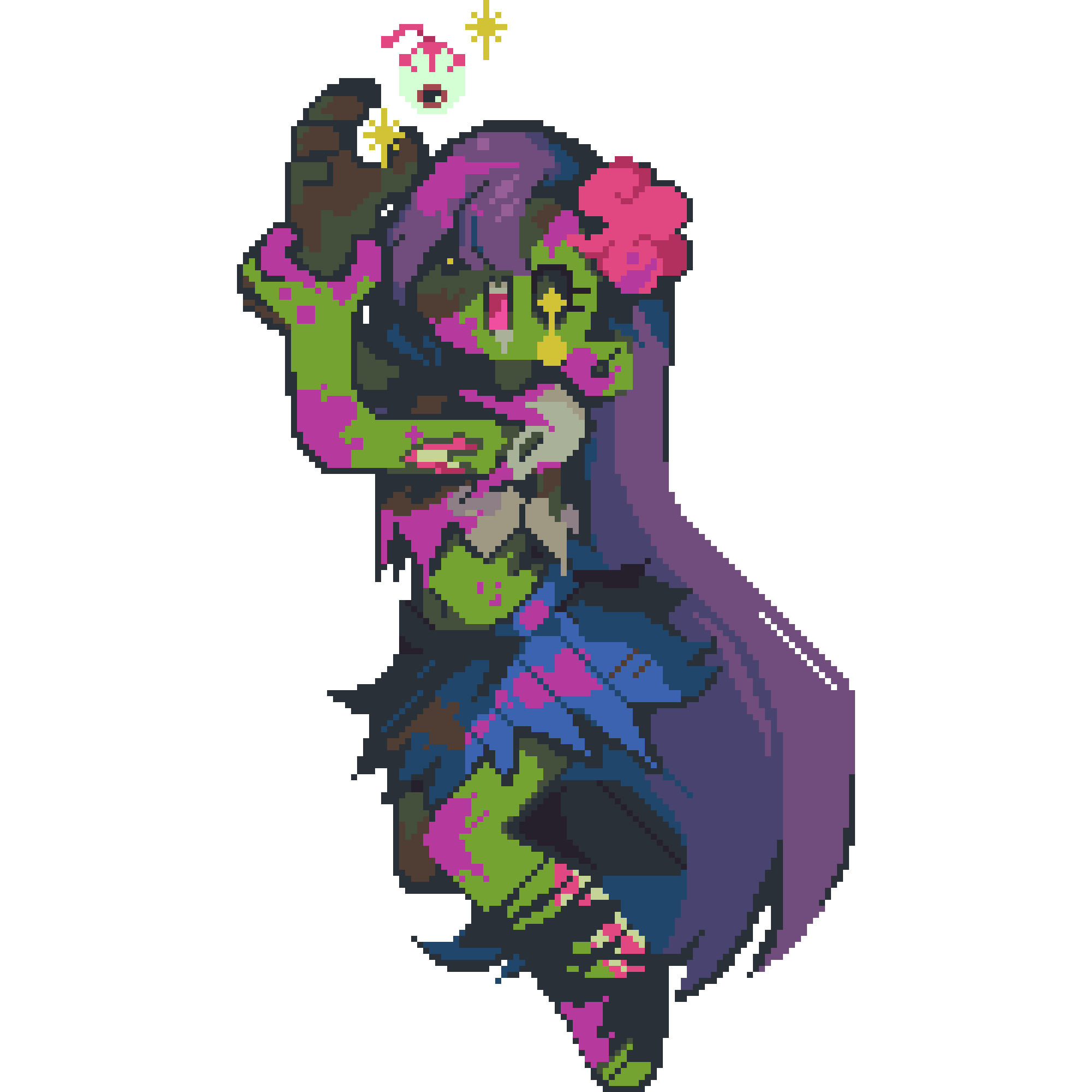 彼女から目を離さないで。生死を問わず、皆の視線が彼女に注がれることが彼女にとっての喜びだった。今、彼女はその視線さえも食べてしまう。これはピクセルアートに初挑戦した作品だ。確かに圧倒されたが、それでもやり遂げた甲斐があった!